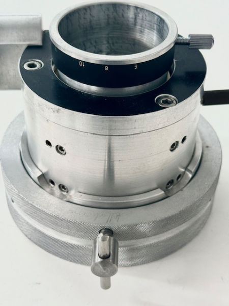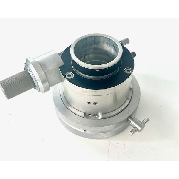 2" High Ende Okularauszug mit extremer Zuladung und 1:100 Untersetzung: Rotationsadapter mit M100 Innengewinde zum Teleskop, 6 mm Fokusierweg mit 1:100 Untersetzung mit Ablesung, maximale Baulänge ( ausgezogen ) 101 mm, Gewicht ca. 1 Kg, größter Aussendurchmesser ist am Rotationsring mit 120 mm