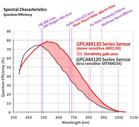 In der Altair GPCAM2 AR0130 Monokamera wurde der Aptina AR0130 CMOS-Sensor mit einer höheren Empfindlichkeit (ca. 78% QE) verbaut.