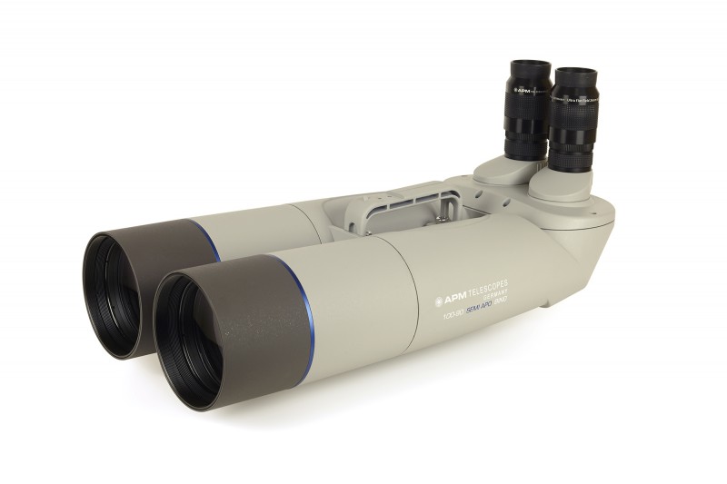 Die Semi-Apo-Objektive ermöglichen eine Abbildung mit hohem Kontrast. Das Gehäuse ist wetterfest und die Stabilität des Magnesiumgehäuses ist beeindruckend. Ausziehbare Taukappen schützen die Objektive auch bei langen Beobachtungen vor Taubeschlag und können bei Tage als Seitenlichtblende dienen. Dieses Fernglas verfügt natürlich über einen Stativanschluß sowie einen robusten Tragegriff. Im Lieferumfang ist unsere speziell konstruierte, stabile Gabelmontierung für APM Ferngläser bereits enthalten!