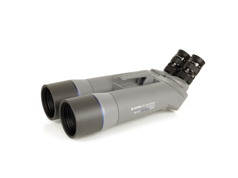 Unsere 82mm SD-Apo Ferngläser bieten hohe Leistungsfähigkeit im mittleren Größenbereich. Das 2-linsige apochromatische Optikdesign bildet sehr sauber ab und ist auch höher vergrößerungsfähig. Zum hohen Kontrast und exzellenter Bildhelligkeit trägt auch die hochmoderne Multivergütung bei. Dank des standardmäßigen 1,25" Okularanschlusses lassen sich viele Weitwinkelokulare problemlos nutzen! Dies eröffnet die Möglichkeit zur Beobachtung sowohl der Planeten und des Mondes als auch ausgedehnter Sternfelder und Nebelregionen. Der Augenabstand ist feinfühlig einstellbar, die Okulare werden einzeln fokussiert. Zur besseren Transportabilität wurde das Gehäuse aus Magnesium gefertigt und Wetterfest.