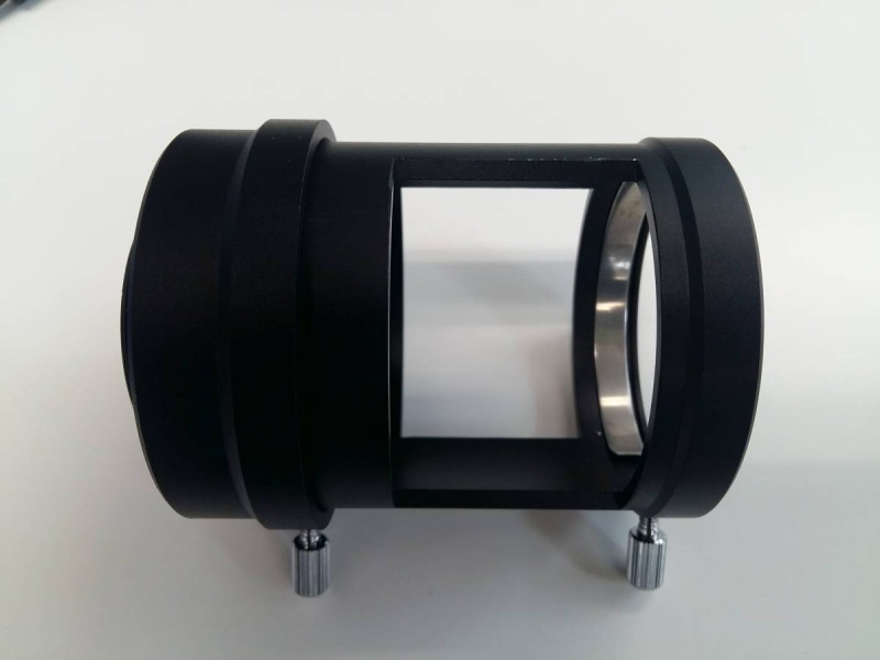 Dieser Adapter wird einfach über das Okular geschoben und mit den Klemmschrauben befestigt. Kameraseitig ist ein M42 Außengewinde vorhanden, das direkt mit einer Kamera verbunden werden kann.