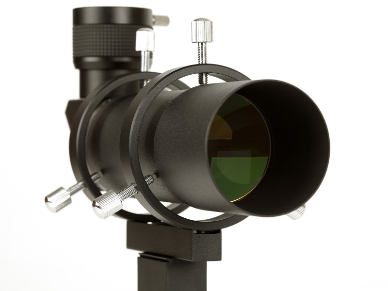 Das verbaute 90° Prisma sorgt für aufrechte und seitenrichtige Abbildung. Sie können den Sucher mit fast jedem 1¼" Okular verwenden, z.B. mit unseren optionalen Fadenkreuzokularen. Die Optik und das Prisma sind multicoated.