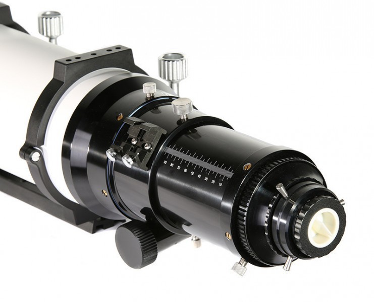 Das Instrument wird mit einem massiven 3,7" Auszug geliefert. Der Auszug ist besonders gut geeignet für schweres Zubehör und bietet selbst bei großformatigen Chips ein absolut vignettierungsfreies Bild. Mit einer Brennweite von 980mm ist der 140mm SD-Apo ein echter Allrounder. Die Beobachtung von engliegenden Doppelsternen mit hohem Kontrast bis hin zu detaillierten Planetenbeobachtungen wird mit diesem Gerät viel Freude machen. Zudem ist dieser neue Apo mit nur 9,8kg recht leicht und schon auf kompakten Montierungen einsetzbar.