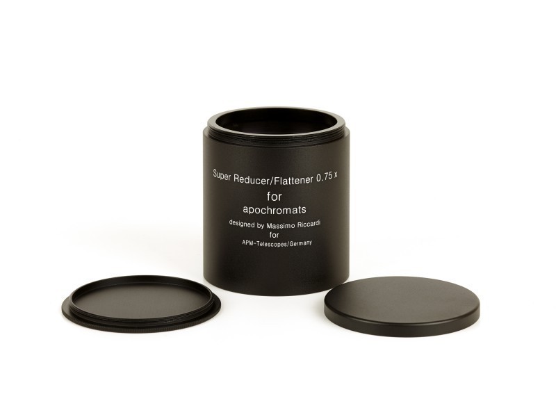 In diesem Paket haben wir unseren Riccardi Flattener APO Reducer 0.75x M63 beigelegt. Der fotografische Bildkreis beträgt 42mm. Alle notwendigen Adapter liegen ebenso bei.