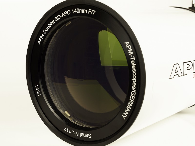 Der neue APM 140mm f/7 Apo überzeugt mit seiner hohen Leistung. Uns ist es jetzt gelungen, dieses Teleskop mit einer hochwertigen Optik und einem soliden Tubus zu einem sensationellen Preis zu entwickeln. Der neue 140mm f=980mm SD Apo verfügt über eine Doublet Optik mit SD-Glas, dessen eine Linse aus FPL-53 besteht. Das bringt maximale Leistung. Diese neue, innovative Kombination führt zu einer Farbkorrektur, die weit über dem Üblichen in dieser Preiskategorie liegt. Um die typisch hohe Qualität von APM Teleskopen zu garantieren, durchläuft jede Optik einen interferometrischen Test.