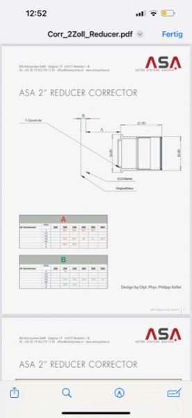 ASA-Astrosysteme Korrektor 2KORRR-1105 für Newton mit Faktor 0.73 x ( Neupreis war bei ASA Ero 791)