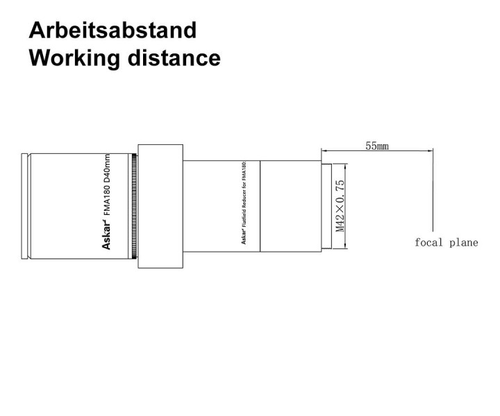 Astrofotografen werden mit dem kompakten Teleobjektiv ihre Freude haben. Sterne bis zum Rand werden knackscharf abgebildet. Mit 55 mm Arbeitsabstand (T2-Anschluss) können Sie alle gängigen Kameras anschließen. Der Abstand ist auf 99 mm verlängerbar. Die Multifunktionshalterung ermöglicht eine einfache Adaption an den Sucherschuh Ihres Teleskopes oder an eine aufsattelbare Kamerahalterung über das 1/4"-Innengewinde.
