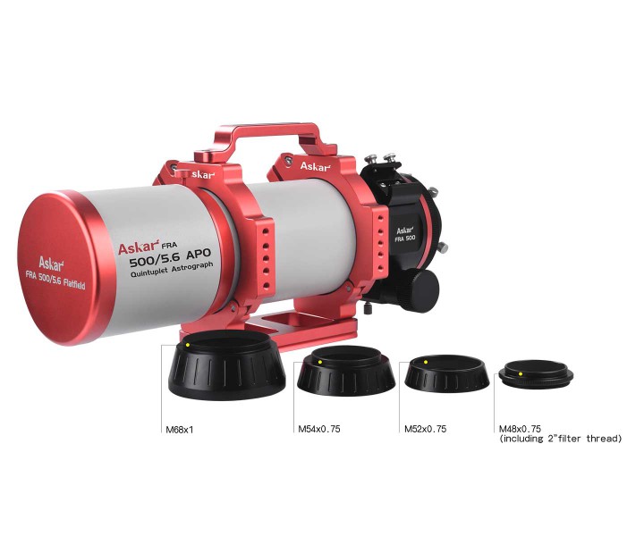 Der ASKAR FRA500 wurde für die Astrofotografie ausgelegt. Durch den komfortablen Arbeitsabstand können aber auch 2"-Zenitspiegel angeschlossen werden. So wird aus dem Astrograph ein sehr schönes Spektiv und Teleskop für die astronomische Beobachtung und auch Landschaftsbeobachtung. Wir beraten Sie gerne wegen des geeigneten Adapters.