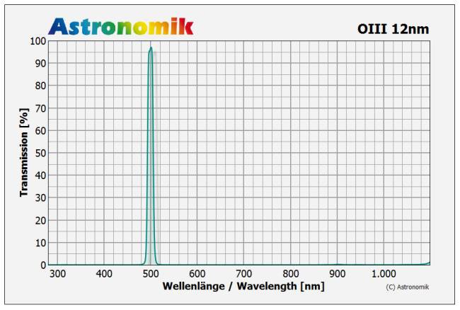 Der Filter blockt die gesamte künstliche und natürliche Himmelsaufhellung. Insbesondere die Emissionslinien von Nieder- und Hochdrucklampen (Quecksilber (Hg) und Natrium (Na)) und die Linien des Airglow werden vollständig herausgefiltert. Der Filter steigert den Kontrast zwischen Objekten, die in der OIII Emissionsline leuchten, und dem Himmelshintergrund.