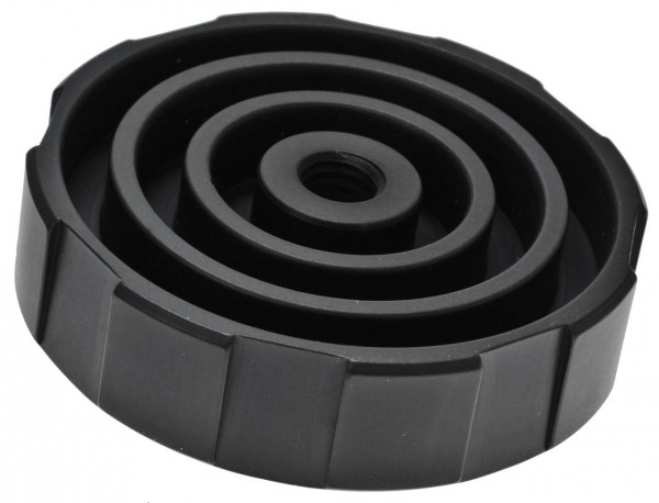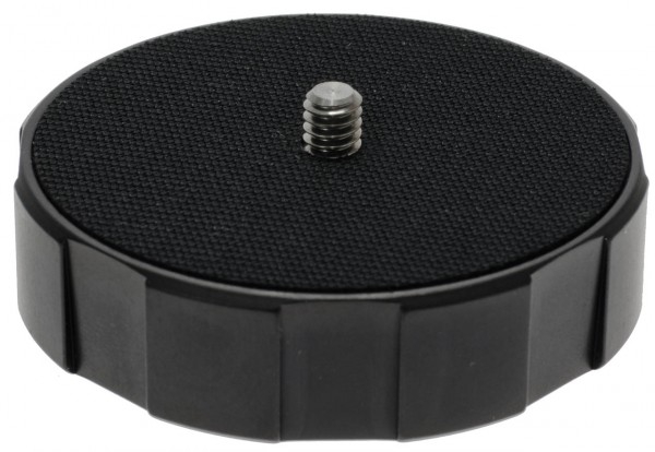 Adapter mit Bodengewinde 3/8" und Gewindezapfen 1/4" Durchmesser der Auflagefläche: 68 mm Höhe: 18 mm zzgl. Gewindezapfen, Material: Aluminium schwarz eloxiert