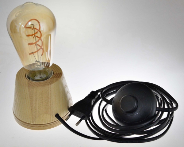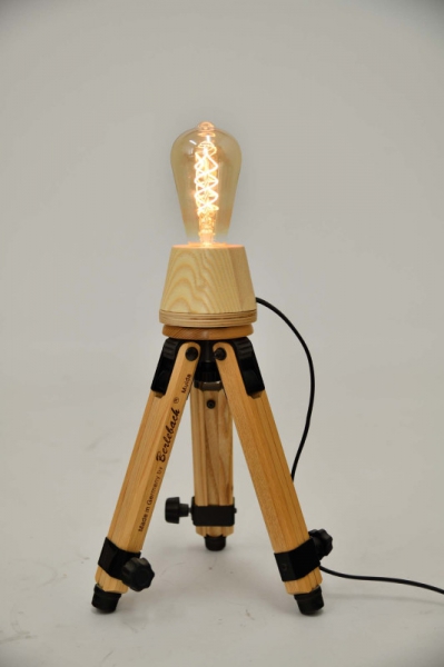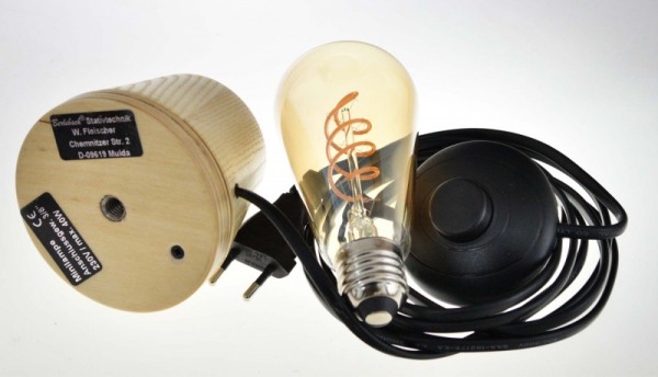 Die Leuchte besteht aus einer Eschenholzfassung mit einem Durchmesser von 90 mm und einer Höhe von 70 mm. Bodengewinde 3/8" passend für alle Fotostative, eine Reduzierhülse auf 1/4" ist im Lieferumfang enthalten. Als Leuchtmittel wird eine Vintage LED Lampe im Eddison-Design mit 4W Leistung (entspricht 40 W herkömmlicher Lampe). Diese kann auch mit einem anderen Leuchtmitteln getauscht werden (max. 40 W). Angeschlossen ist die Leuchte mit einem 2,8 m langem Kabel mit Fußschalter. Gewicht: 260 g incl. Leuchtmittel und Kabel. (Nur für den europischen Markt) Das Ministativ ist nicht im Lieferumfang enthalten und dient nur zur Veranschaulichung.