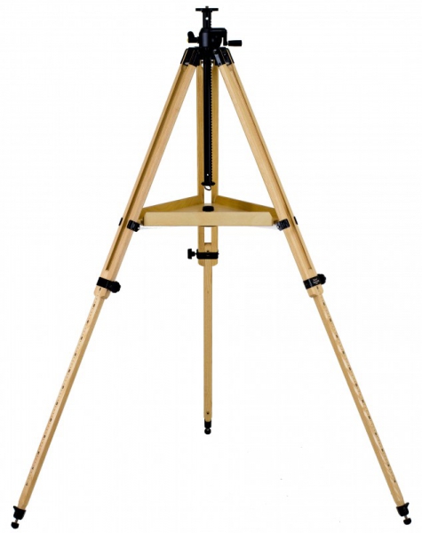 Stativ mit Kurbelsäule und Ablageplatte, speziell für den Bereich der Astronomie. Das Stativ ist mit dem Modul 2K (Kurbelsäule Ø 25 mm) oder wahlweise mit Modul 9 (Kurbelsäule Ø 40 mm ) sowie einer Spreizsicherung (Spinne) und Ablageplatte ausgestattet. Maximale Höhe des Stativs mit eingeschobener Kurbelsäule: 142 cm Befestigungsgewinde am Teller der Kurbelsäule: 3/8" Das Stativ besitzt kein Anschlagsystem für die Einstellung der Spreizwinkel der Stativbeine, da der Spreizwinkel durch die anmontierte Spreizsicherung vorgegeben ist.