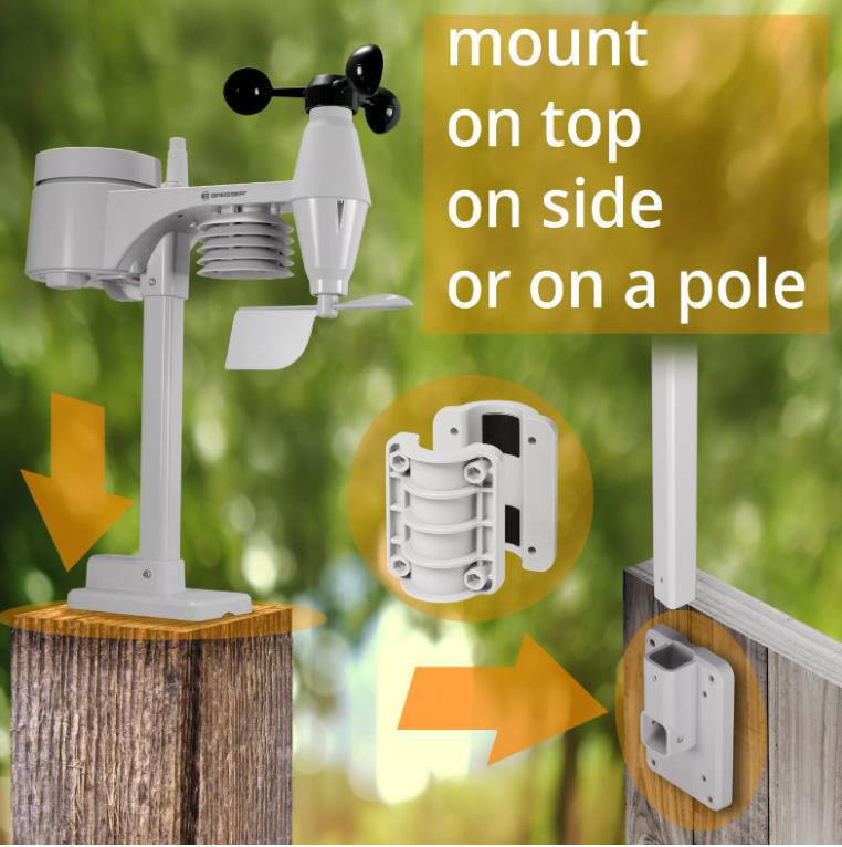 Blitzschnell im Einsatz – ist der perfekte Ort für den 5-in-1-Außensensor erst einmal gefunden, installieren Sie diesen ganz einfach und schnell mit dem enthaltenen Montagematerial. Einmal in Betrieb sendet das robuste Messgerät seine Daten dann per 868 MHz Frequenz zuverlässig an die Basisstation. Und dort erscheinen Temperatur, Luftfeuchtigkeit, Windgeschwindigkeit, Windrichtung und Niederschlagsmenge ruckzuck auf der Bildfläche.