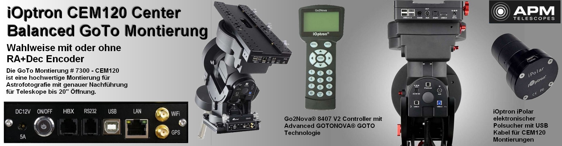 iOptron bietet innovative Montierungen und Zubehör für Astronomie und Astrofotografie. APM Telescopes  ist der autorisierter Händler in Deutschland und bietet vollen Service und Support.