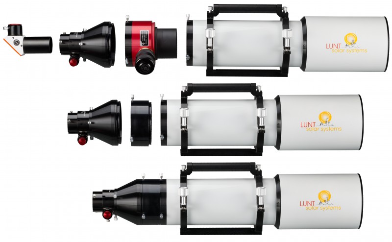 Modulares System:Das H-Alpha Etalon System lässt sich mit wenigen Handgriffen vom Teleskop entfernen. Der 3-linsige ED Apochromat kann dann als normales Teleskop für Beobachtung und Fotografie des nächtlichen Sternenhimmels verwendet werden.