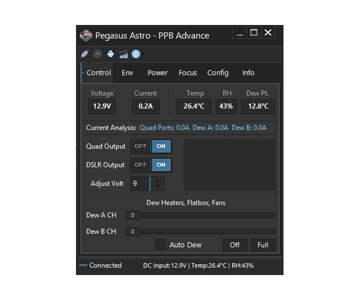 Schließen Sie das Gerät an Ihren Laptop/PC an und steuern Sie die Pocket Powerbox Advance über die mitgelieferte Software oder ASCOM-Treiber