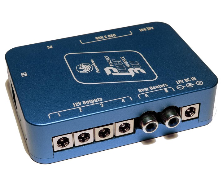 Pocket Powerbox Advance kann "out of the box" als eigenständiges Gerät arbeiten. Schließen Sie einfach die Kabel an, richten Sie die "Autodew"-Funktionalität ein, und jedes Mal, wenn Sie das Gerät hochfahren, ruft es Ihre Einstellungen ab. Wenn Sie also nicht jedes Mal einen PC anschließen möchten, müssen Sie das nicht tun. So einfach ist das!