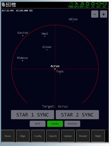 Jetzt bieten wir für die AZ100 Montierung ein komplettes GoTo System mit Motoren an. Das Setup kann über WiFi direkt mit Sky-Safari kommunizieren.