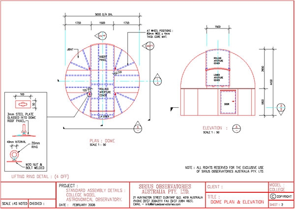 Nach dem 2,3m Heim-Model, dem 3,5m Schul-Model und dem 6,7m Universitäts-Model gibt es nun, dem Wunsch vieler Amateurastronomen folgend, auch ein 5m Observatorium mit der Bezeichnung College-Modell von Sirius Observatories. Die große Kuppel bietet viel Platz, ist aber noch klein genug um völlig problemlos aufgebaut zu werden. Eine leicht verständliche Anleitung hilft dabei.