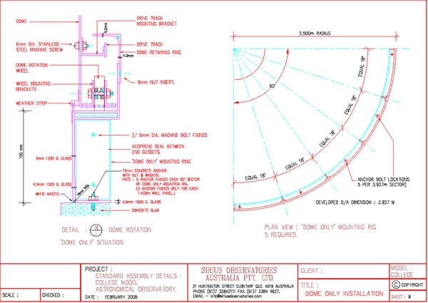 Nach dem 2,3m Heim-Model, dem 3,5m Schul-Model und dem 6,7m Universitäts-Model gibt es nun, dem Wunsch vieler Amateurastronomen folgend, auch ein 5m Observatorium mit der Bezeichnung College-Modell von Sirius Observatories. Die große Kuppel bietet viel Platz, ist aber noch klein genug um völlig problemlos aufgebaut zu werden. Eine leicht verständliche Anleitung hilft dabei.