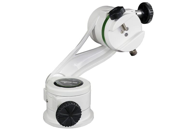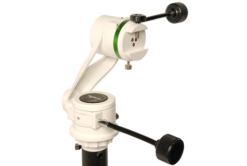 Die azimutale AZ5 Deluxe Montierung lässt sich einfach auf jedes Stativ mit Standard 3/8" Fotogewinde Anschluss montieren. Sie wurde aus solidem Aluminium Guss gefertigt für kleinere Teleskope mit bis zu 5 kg Gewicht, die sich mit einer Vixen / Skywatcher Norm Schwalbenschwanzschiene einfach befestigen lassen. Sie können aber auch andere Geräte mit einem optional erhältlichen L-Halter verwenden. Enthalten sind zusätzlich zwei biegsame Wellen zur Betätigung der Feinuntersetzungen. Sie können die Montierung aber auch manuell in jeder Achse bewegen, für schnelles Schwenken in horizontaler und vertikaler Richtung.