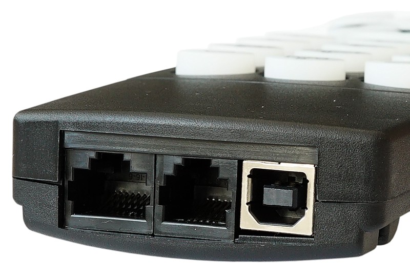 RJ-11: Der Eingang für den 6-poligen Rj-11-Verbinder dient der Kommunikation zwischen der Handbox und einem Computer.