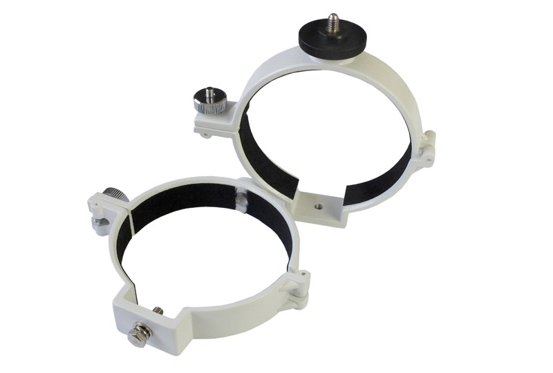 Diese hochwertigen Sky-Watcher Teleskop Rohrschellen aus Aluminium Guss werden speziell für die Verwendung auf unseren AZ3, EQ1, EQ2, EQ3-2, EQ5, HEQ5, EQ6, AZ-EQ5 und 6 sowie EQ8 Montierungen für uns gefertigt. Es gibt sie in den den Durchmessern 90mm, 101mm, 116mm, 130mm, 140mm, 182mm 235mm und 285mm. Sie sind aufklappbar und Innen mit Filz ausgekleidet für eine einfache Installation Ihres Teleskopes. Nach dem Lösen der Rändelschrauben kann das Teleskop einfach ausbalanciert und rotiert werden.
