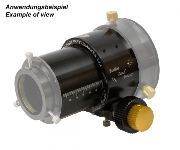 Starlight Instruments Feather Touch FTF2525HD - 63 mm freie Öffnung (2,5") Dieser Zahnstangenauszug ist für alle Sternfreunde, die einen Fokussierer mit mehr als 2" brauchen, der aber trotzdem noch kompakt sein soll. Der Auszug bietet vor allem eine bessere Ausleuchtung, die man für das Arbeiten mit größeren Chips benötigt. Der Verstellbereich ist mit 63 mm sehr großzügig bemessen. Zur Zeit wird dieser Auszug als eine bessere Alternative zu 2"-Auszügen gelobt. Die Vorteile des Feather Touch 2,5"-Auszuges: ♦ 100 % korrekte Lage der Feldebene - das Auszugsrohr gibt nicht nach ♦ Freie Ausleuchtung von 63 mm, damit werden auch Vollformatchips ausgeleuchtet ♦ Beste mechanische Verarbeitung ♦ Internes Blendensystem ♦ Schonende Klemmung über Federspannring Technische Informationen: ♦ Robustes Fokussiergehäuse - keine Verwindung ♦ 1:10-Mikrountersetzung für genaues Scharfstellen ♦ Freie Adaptierbarkeit an verschiedene Geräte mit den Adapterstücken (siehe empfohlenes Zubehör) ♦ Bremse (Brake) zur freien Einstellung des Widerstandes je nach Belastung und zur soliden Klemmung ohne Verschieben des Auszugsrohres ♦ Zahntrieb, keine Friktion - damit ist ein noch besserer Kraftschluss erreichbar ♦ Messing-Zahnstangen und gehärtete Edelstahlzahnräder garantieren eine lange Lebensdauer ♦ Schrägverzahnung für geschmeidigen Lauf ♦ Anschraubbare Verlängerungstuben (siehe empfohlenes Zubehör) Hinweis: Anschlussadapter an das Teleskop sind nicht im Lieferumfang enthalten. Anschlussadapter an das Teleskop sind unter "Montierungszubehör" aufgelistet. Okular- und kameraseitige Adapter sind unter "Adapter" aufgelistet.