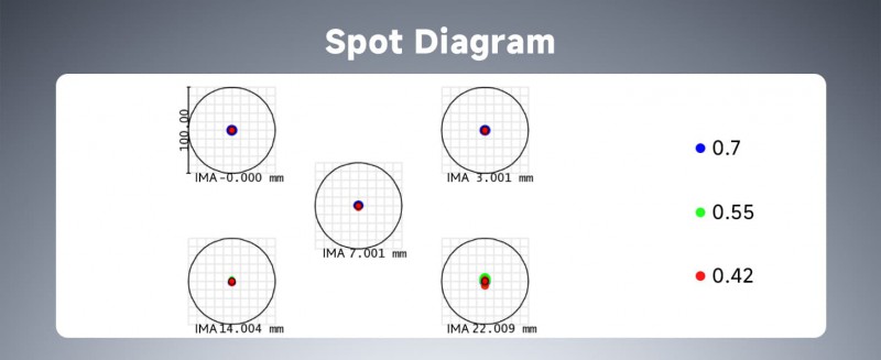 Korrigierte optische Aberrationen im zentralen Bildfeld und flaches Gesichtsfeld bis zum Rand