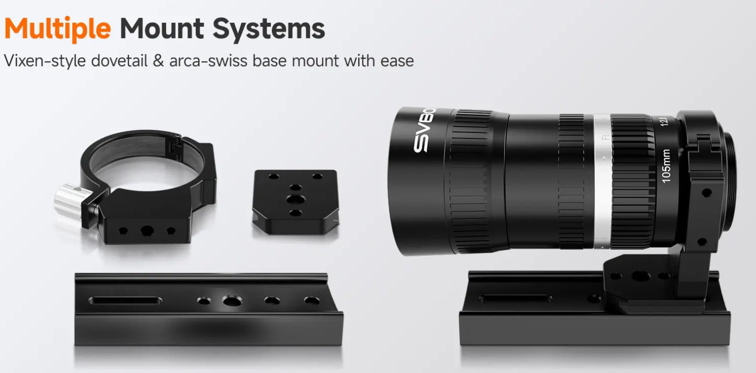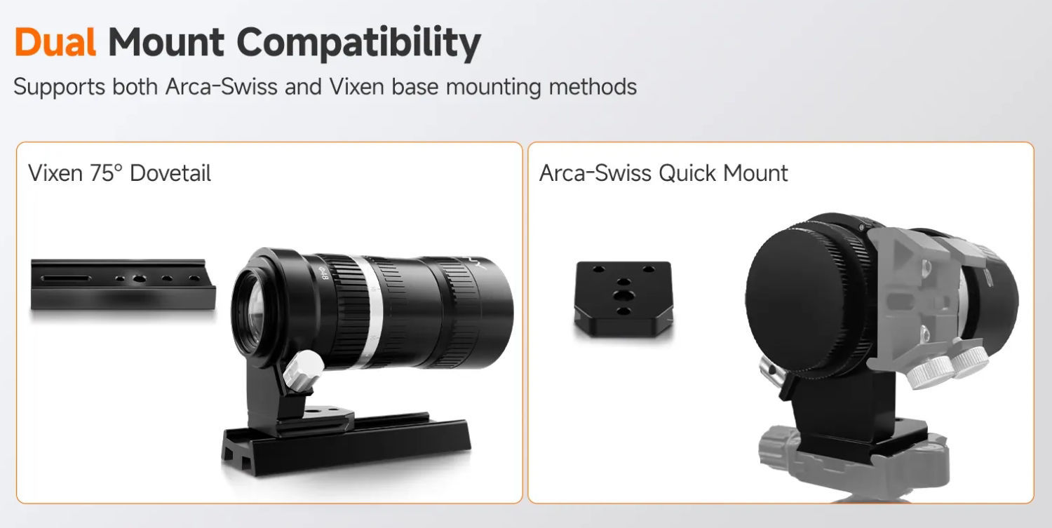 Ausgelegt für Vixen- und Arca-Swiss-Standards – für einfache Integration mit unterschiedlichen Stativen und äquatorialen Montierungen.