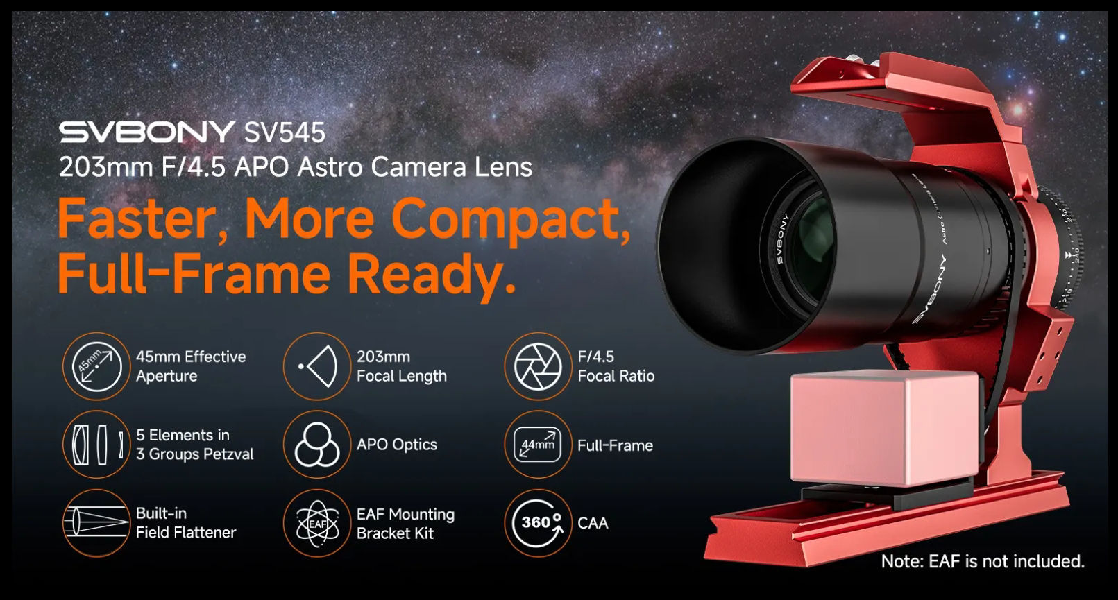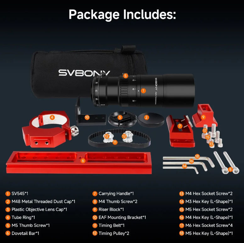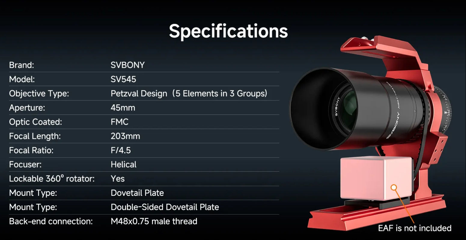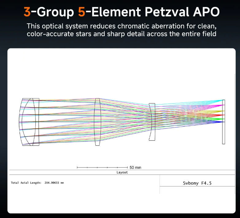 SVBONY SV545 Petzval-Refraktor 45 mm f/4,5 (203 mm) [W9317B]FMC-Teleskop mit Helikalfokussierer, 360°-Rotator & M48-Gewinde
