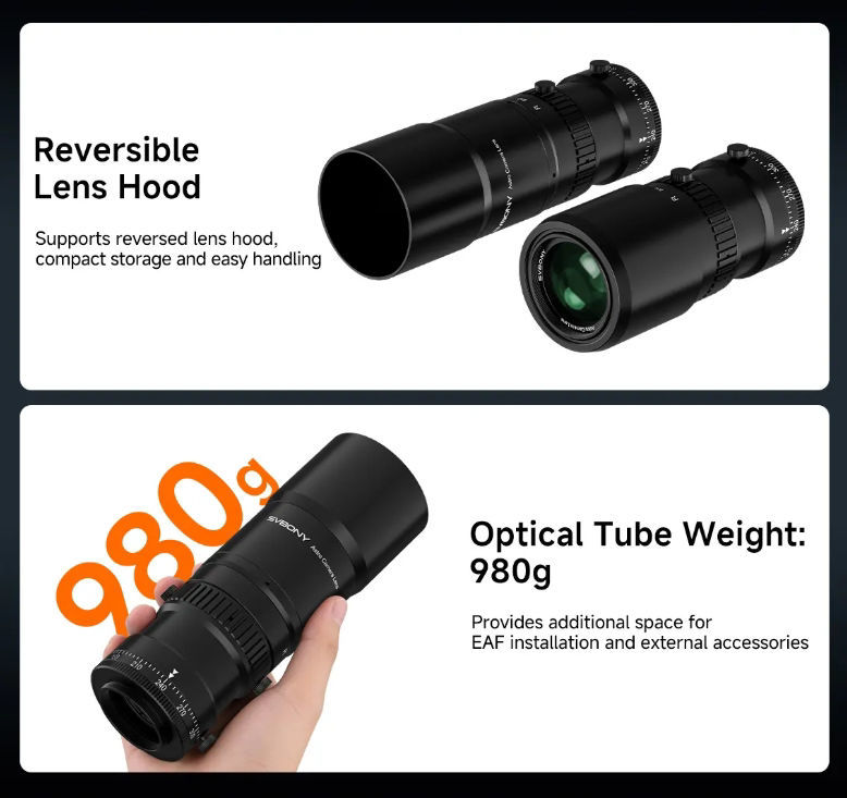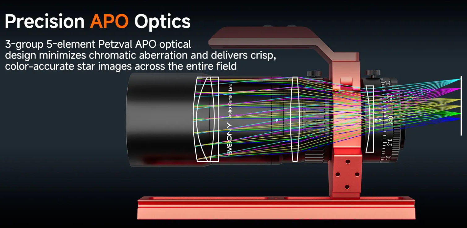 Die 3-Gruppen-/5-Elemente-Triplet-Petzval-APO-Konstruktion sorgt für eine hervorragende optische Konsistenz und hohe Portabilität im Vergleich zu komplexen, vollständig getrennten 6-Gruppen-Designs. Das Ergebnis ist außergewöhnliche Schärfe bei zugleich einfacherer und zuverlässigerer Bauweise.