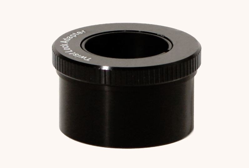 Der OVL TwistLock Adapter ist ein innovativer, niedrigbauender, selbstzentrierender 2" auf 1,25" Teleskop Okular Adapter in stabiler Metall Konstruktion mit Gewinde für die Aufnahme von 2" Standard Filtern. Drehen Sie einfach den oberen, gerändelten Befestigungsring und Ihr 1,25" Okular, Kameraadapter oder Laser Kollimator wird präzise in Ihrem 2" Fokussierer zentriert und gesichert von einem Polypropylen Kompressionsring, der ein zerkratzen oder Beschädigen des Zubehörs verhindert. Standard 1,25" Adapter verwenden eine Rändelschraube, die das Zubehör auf einer Seite drückt, wenn sie angezogen wird, nicht so dieser Adapter. Aber warten Sie, es gibt noch mehr... wenn Sie den gerändelten Befestigungsring abschrauben, finden Sie darunter ein T2 Außengewinde, der Ihre Kamera oder anderes Zubehör aufnimmt. (Adapter 2" auf T2). So erhalten Sie 2 Adapter zum Preis von einem. Sie möchten bestimmt einen davon für jedes Ihrer Teleskope!