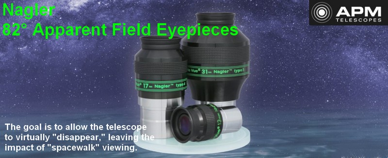 Die Nagler Typ 7 Serie wurde als natürliche Erweiterung unseres hochgeschätzten, auf 85° limitierten Apollo 11 Okulars entwickelt. Die Serie kann jedoch auch als eine Erweiterung des Nagler Typ 4 Konzepts mit langem Augenabstand betrachtet werden. Mit dem völlig neuen Typ 7 Design-Layout haben wir unser Ziel erreicht, eine Apollo 11-ähnliche Leistung in einer Reihe von brillenfreundlichen Brennweiten zu erreichen.