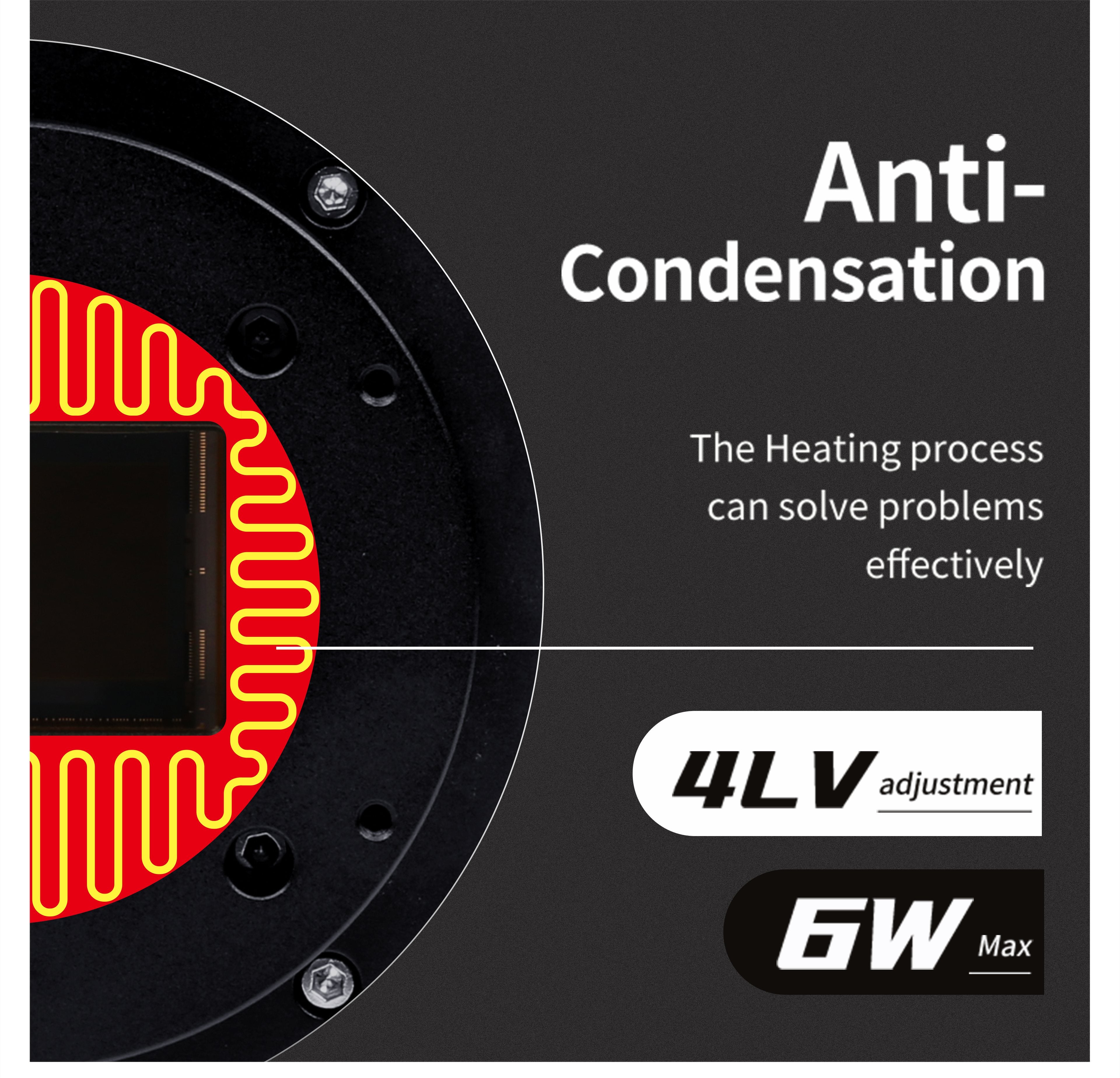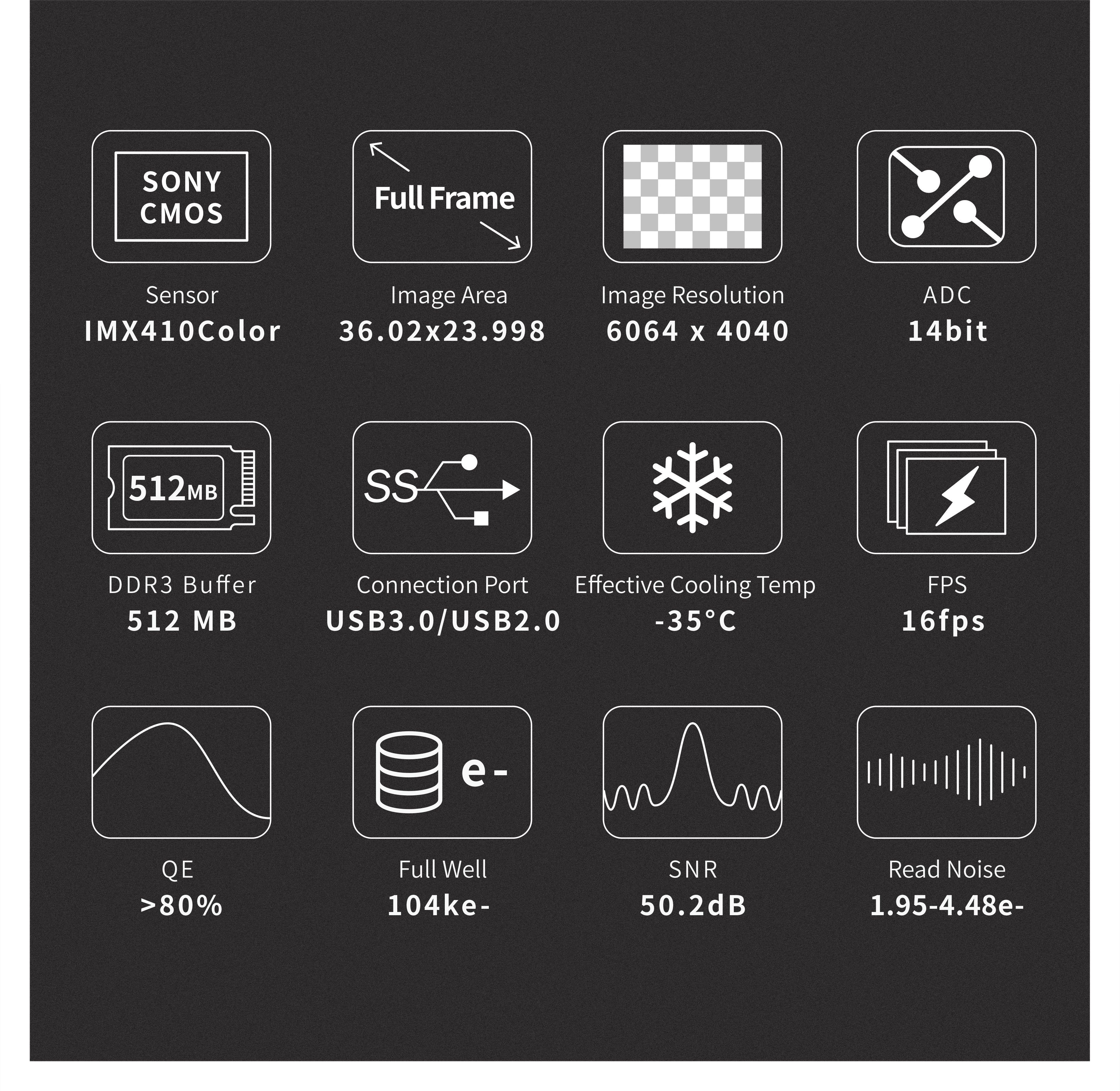 KühlungDie integrierte Kühlung sorgt dafür, dass die Temperatur des Sensors gesenkt wird, wodurch das Rauschen minimiert und die Bildqualität verbessert wird. Dies ist besonders wichtig bei langen Belichtungszeiten, da es die Detailtreue der Aufnahmen erhöht.