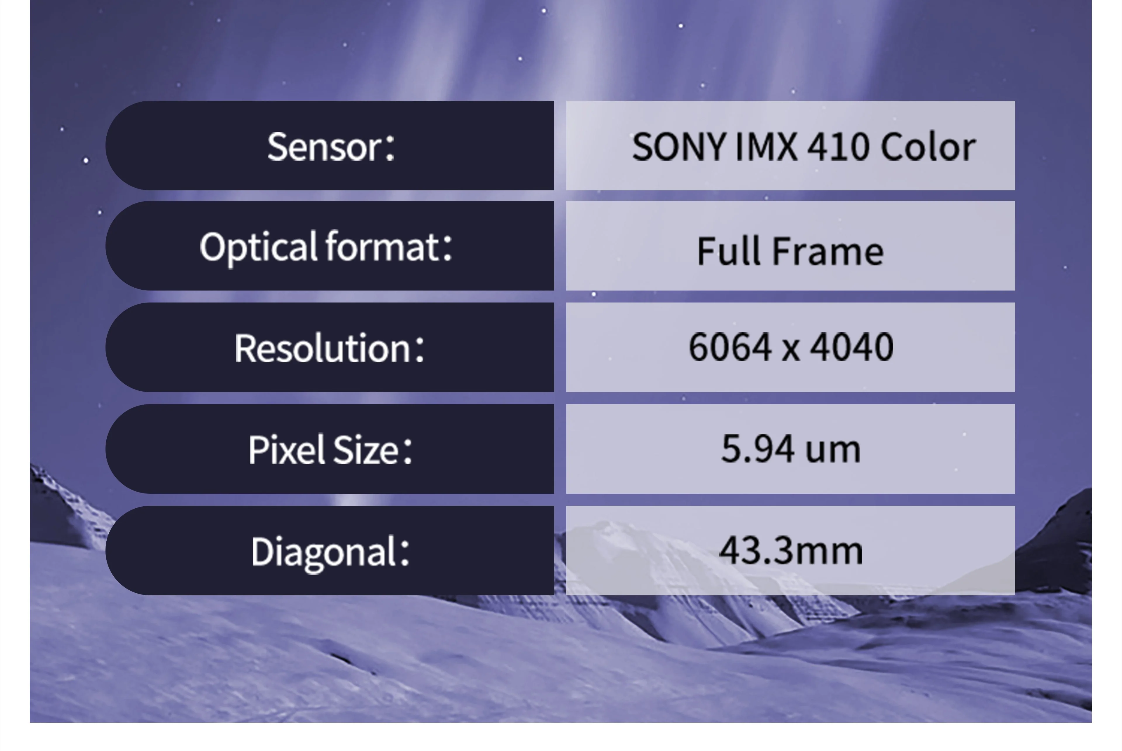 Der große Sensor ermöglicht ein breiteres Sichtfeld und detailreiche Aufnahmen von Galaxien, Nebeln und anderen astronomischen Objekten.