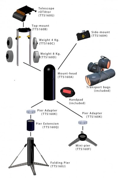 Der TTS-160 Panther Montierungskopf ist das Herzstück des hochflexiblen und konfigurierbaren Montierungssystems. Die Montierung kann sowohl für visuelle Beobachtungen als auch für Langzeit-Fotografie eingesetzt werden. Mit dem passenden Zubehör können auch mehrere Teleskope parallel montiert werden.