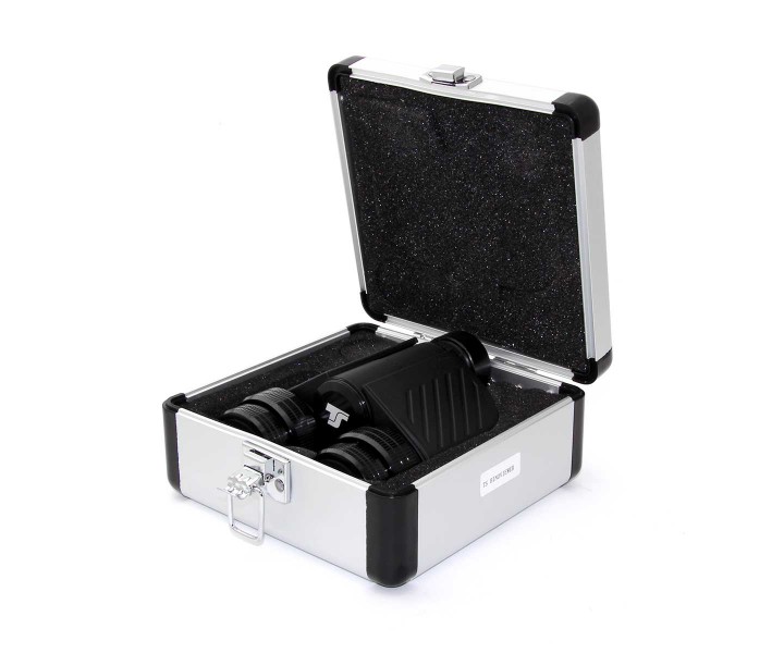 - Das Binokular wird in einem soliden Metallkoffer geliefert. Alle Öffnungen sind natürlich durch Staubschutzkappen verschlossen. So wird der Binoansatz auch noch nach vielen Jahren wie neu sein.
