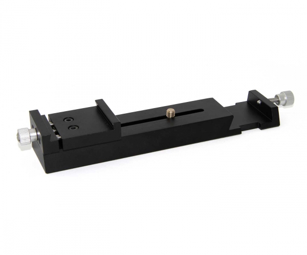 Gerade kompakte APOs sind für mobile Astrofotografie ideal. Befestigen Sie den APO auf der einen Seite an der GP-Level-Prismenklemme und führen Sie mit einem kompakten Leitrohr, welches Sie am Sucherschuh befestigen, nach. So eine Kombination wird schon von der Skywatcher-Montierung EQ3 getragen - es ist eine flugreisetaugliche Astrofotografiekombination. - Multifunktionsschiene für Fotostative