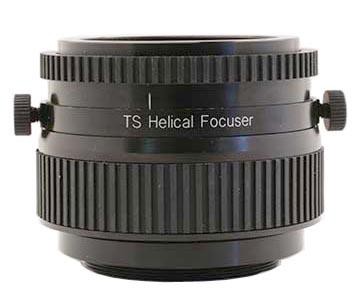 TS Optics 2"-Helical-Auszug, ein Schneckenfokussierer mit M48 Anschluss Ein echter Helikalauszug wie dieser arbeitet wie ein Kameraobjektiv. Wenn Sie den Scharfstellungsring drehen, drehen sich weder Kamera noch Okular mit, die einzige Bewegung ist nach innen bzw. nach außen.
