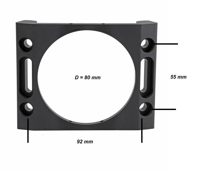 | Basis | 55 mm längs- und 92 mm quer zum Tubus und zusätzlich noch zwei Langlöcher längs zum Tubus |