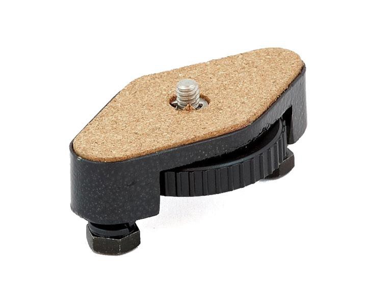 Die Klemmung erfolgt über eine 1/4"-Fotoschraube ohne Werkzeug. Eine groß dimensionierte Rändelschraube sichert den Halt der Optik auf der Montierung. Die Korkauflage verhindert ein Verkratzen der Oberflächen und ein Verdrehen der Optik.