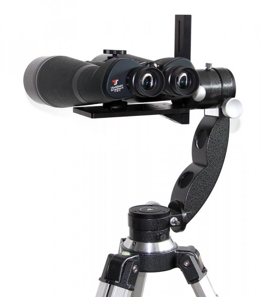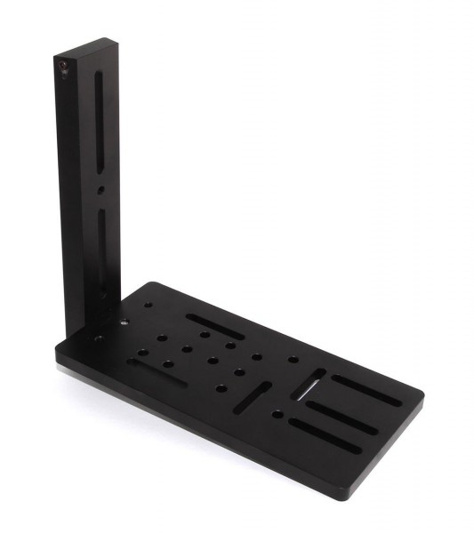 Der L-Halter/90°-Winkelhalter erlaubt die Montage von Spektiven, Ferngläsern oder auch kleinen Teleskopen an Montierungen mit seitlicher Schnellkupplung. Die besonders stabile Ausführung mit großer Anschlussplatte ermöglicht eine verwindungsfreie Adaption. Die viele langlöcher gestatten flexible Anschlussmöglichkeiten.