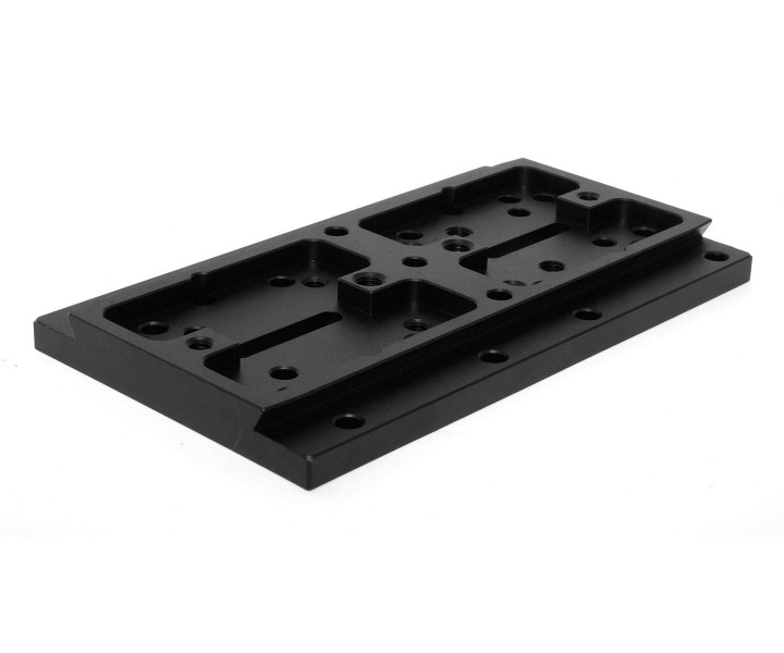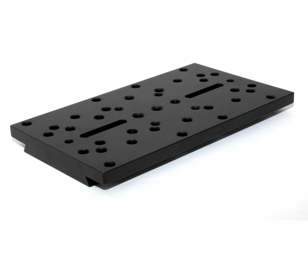 - Langlöcher und Senklöcher sowie Innengewinde ermöglichen eine problemlose Adaptierung von verschiedenem Zubehör wie Kugelköpfen, Leitrohrschellen oder Rohrschellen für Teleskope.