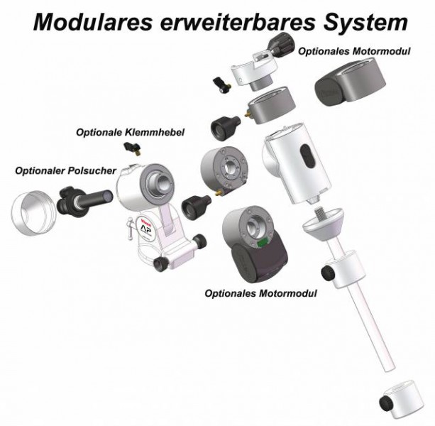 Die einfache Ausrichtung auf ihr Zielobjekt mittels der Rutschkupplungen, erleichtert das Einstellen enorm, da sie im Dunkeln nicht mehr nach den Feststellklemmen suchen müssen. Mittels optionalen Polarmeter, können sie den Himmelspol auffinden, auch wenn dieser durch Bäume oder Häuser verdeckt wird.