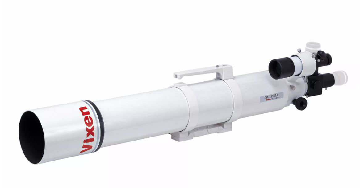 Der Vixen SD115SII Teleskop OTA ist ein neuer 115 mm apochromatischer Refraktor mit Hochleistungs-Super-ED-Glas (= SD). Der Vorteil dieses SD-Refraktors liegt in seiner kurzen Baulänge und seinem geringen Gewicht.Das in dem Teleskop verbaute FPL53 Glas reproduziert durch eine außerordentlich hohe Beseitigung von Restfarbfehlern ein extrem klares und scharfes Bild. Das SD-Glas ist so konzipiert, dass es alle Strahlen – violett, rot, blau, gelb und grün – sehr exakt auf dieselbe Ebene zusammenbringt. Das spezielle Linsenmaterial reduziert damit die chromatische Aberration über alle Farben.Bei dem neuen Vixen SD115SII werden keine Abstandsplättchen mehr verwendet, was gerade bei hellen Sternen zu einer bedeutend besseren Bildqualität führt. Auf fotografischen Aufnahmen sind somit keine Spikes an den Sternen mehr zu sehen, die sonst durch die Abstandsplättchen erzeugt wurden. Zudem werden Sie begeistert sein, wenn Sie sich den Mond oder die helleren Planeten anschauen und die Mondkrater gestochen scharf sowie mit extrem hohem Kontrast beobachten können. Betrachten Sie auch den Ringplaneten Saturn oder die Wolkenbänder auf Jupiter. Aber natürlich können auch hellere Deep-Sky-Objekte wie der Orionnebel oder die Andromeda-Galaxie eindrucksvoll beobachtet werden.In Kombination mit dem neuen optionalen SD Reducer HD Kit oder SD Flattener HD (nicht enthalten) ermöglicht dieses Refraktor-Teleskop eine Ausleuchtung mit einem 44-mm-Bildkreis für Vollformat-Spiegelreflexkameras.Die älteren ED81SII, ED103S, ED115S Refraktoren wurden ursprünglich für den visuellen Beobachter und den Fotografen mit APS-C-Kameras entwickelt. Die neue SD Serie ist jedoch durch den Einsatz neuer Innenblenden auch für die Verwendung von Vollformatkameras optimiert. Der große 60-mm-Okularauszug ermöglicht zudem das Anbringen auch von schweren Kameras, ohne zu verkippen. Des Weiteren erlaubt der mitgelieferte Klappspiegel bequemes Beobachten selbst in ungünstigen Beobachtungssituationen und bietet zusätzlich ein T2-Gewinde für den Anschluss einer DSLR-Kamera. So können Sie in Gradsicht oder im 90°-Winkel beobachten. Der an den Rohrschellen befestigte Tragegriff sorgt für sicheren Halt beim Transport des Teleskops.