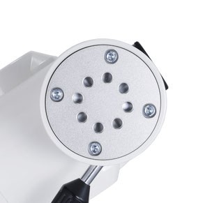 Der Variable Montierungs KopfDer Montagekopf verfügt über einen Durchmesser von 35 mm und acht Gewindelöcher für M8-Schrauben, die im Abstand von 45 Grad angeordnet sind. Es kann eine optionale Zubehörplatte direkt oder in Kombination mit einem optionalen Montageblock für Schwalbenschwanzplatten angebracht werden. Durch die Gewindebohrungen am Montagekopf können auch Aufnahme Schienen von anderen Herstellern verwendet und montiert werden.