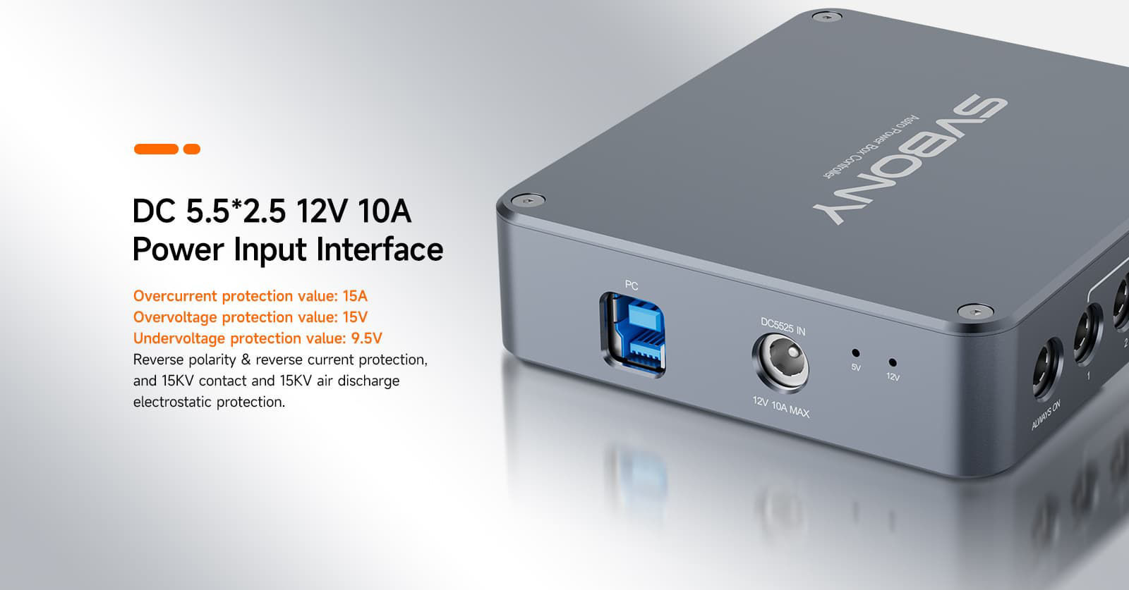 Schützen Sie Ihre Ausrüstung mit integriertem Schaltungsschutz – Verpolungsschutz, Überstromschutz, Kurzschlussschutz, ESD-Schutz. Zusätzlich bietet das Gerät einen automatischen Neustart nach Überlastung.