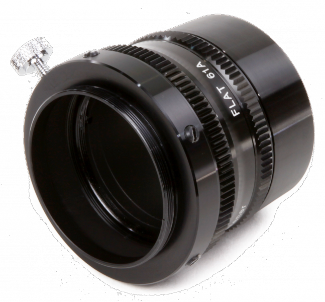 Der Flattener ist eine Linse, die das Bildfeld ebnet, da dieses durch die Primäroptik leicht gekrümmt wird. Diese Krümmung bewirkt, dass Sterne zum Rand des Bildfeldes hin auf Aufnahmen weniger scharf abgebildet und "gestreckt" werden. Der Flattener, auch Bildfeldebnungslinse genannt, korrigiert diesen Fehler.
