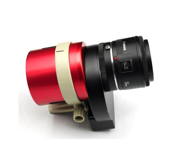 Schließen Sie Kameraobjektive mit EOS-Anschluss an Ihre gekühlte ASI Kamera mit ZWO Filterrad an und erstellen Sie ultimative Großfeldaufnahmen. Die Baulänge des Adapters ist optimal auf den Arbeitsabstand der EOS-Objektive abgestimmt. Sie werden keine Probleme mit der Schärfeeinstellung haben. Um die ZWO Kamera zu adaptieren, müssen Sie den schwarzen T2-Anschluss von der Kamera abschrauben. Dadurch reduziert sich das Auflagemaß auf 7,5 mm